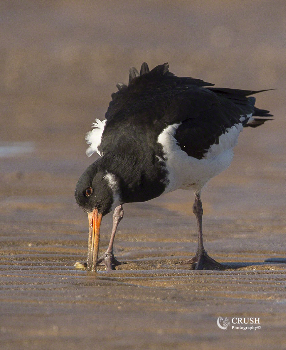 The Oystercatcher is a striking and familiar wader, its pied plumage contrasting with the bright orange bill and pinkish legs.